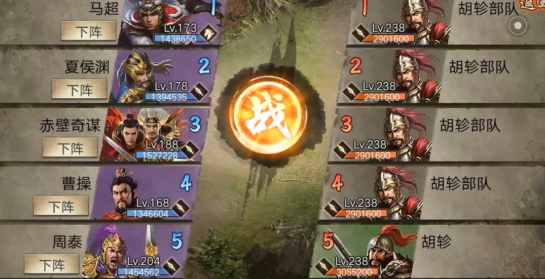 238副本是山地地形,对手胡轸带着第三战车和5格护甲,还会投石,最烦人的是他的战法冲锋陷阵能打4排,而且有概率触发乱舞效...
