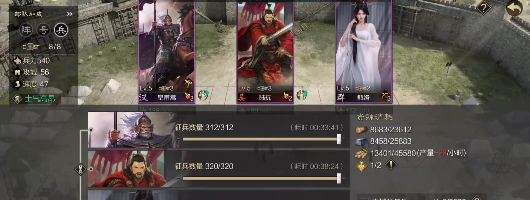 皇甫嵩为核心的爷爷队开荒需要注重武将配置与战法搭配的合理性。初始阶段建议大营皇甫嵩携带先驱突击,中军陆抗配备战必断金,前...