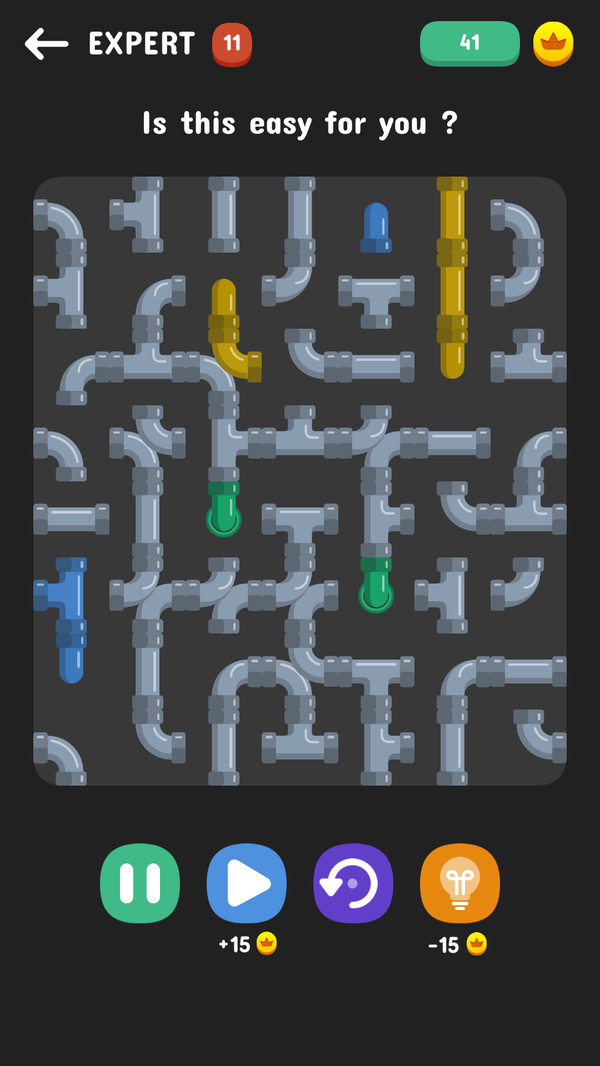 2.游戏包含多种关卡布局和背景主题,随着关卡难度的增加,玩家将体验到更加复杂的衔接难题,这不仅增加了游戏的耐玩性,也进一步考验玩家的思维逻辑。游戏的音效设计尤为精致,背景音乐轻松愉快,旋转或移动管道时的动效声也很贴合,让玩家的游戏体验更加立体。