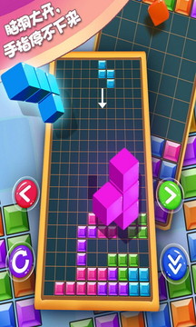 1.进入游戏后,玩家首先会被简洁而明亮的界面所吸引。通过简单新手教程,玩家可以快速了解游戏的基本操作。不同颜色的方块从屏幕上方掉落,玩家需要移动并旋转它们,以便在下方的方块堆积中找到合适的位置。当同一颜色的方块横向或纵向排列成线时,就可以进行消除,并获得相应的积分奖励。